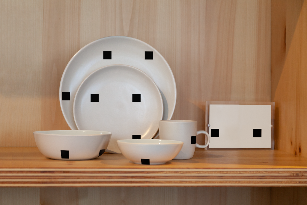 Dishes, on shelf
